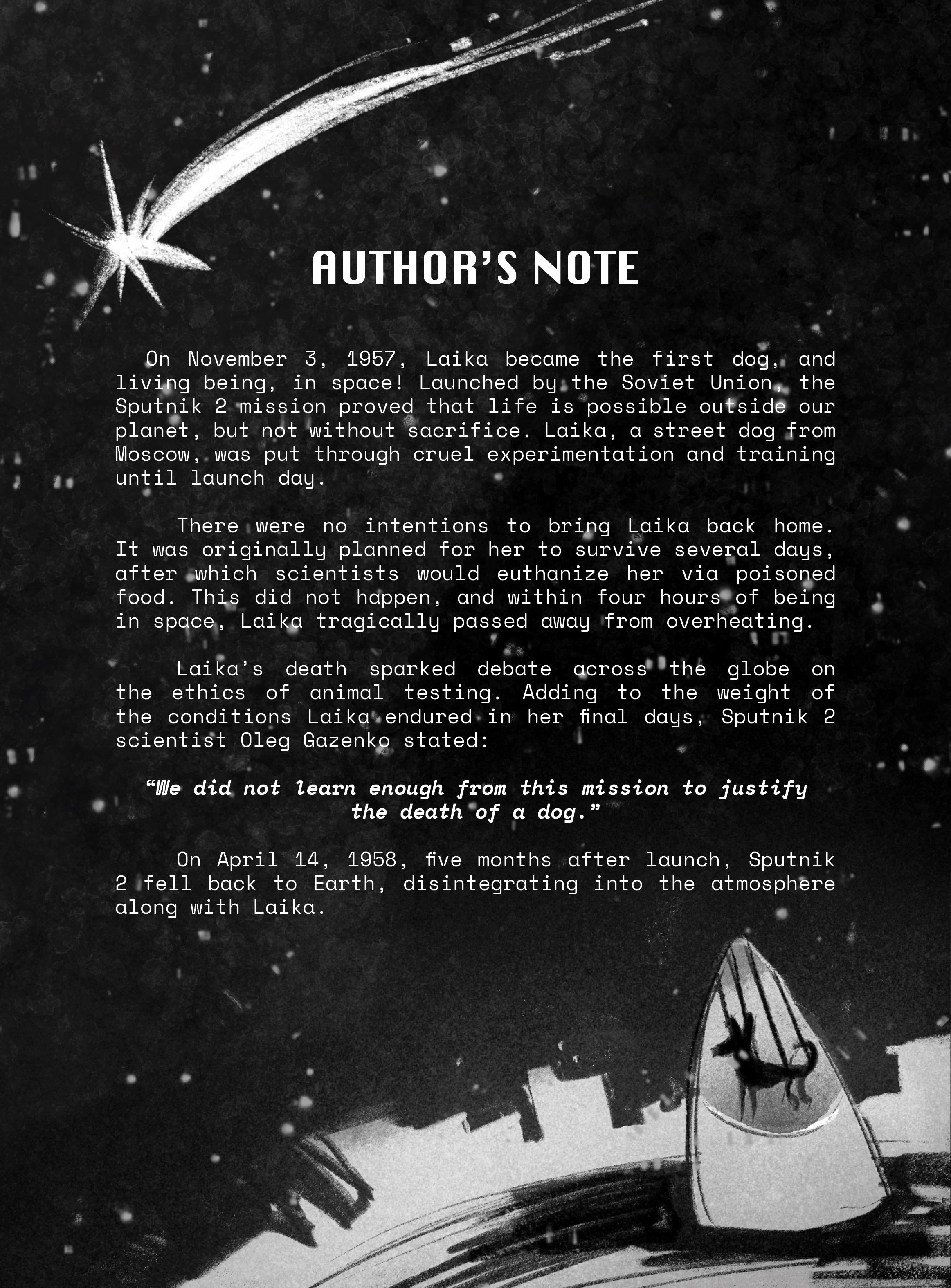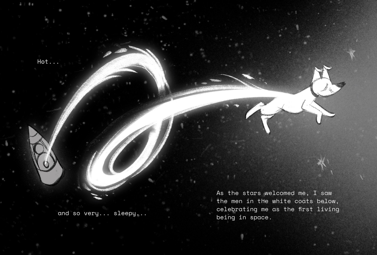 A nonfiction picture book dummy about the tragic story of Laika, the first living being in space.