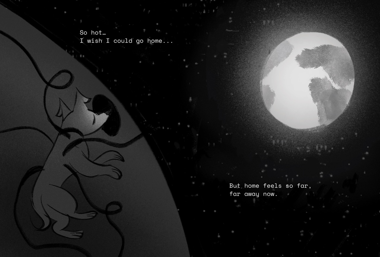 Select spreads from the “Bon Voyage, Little Laika” book dummy.